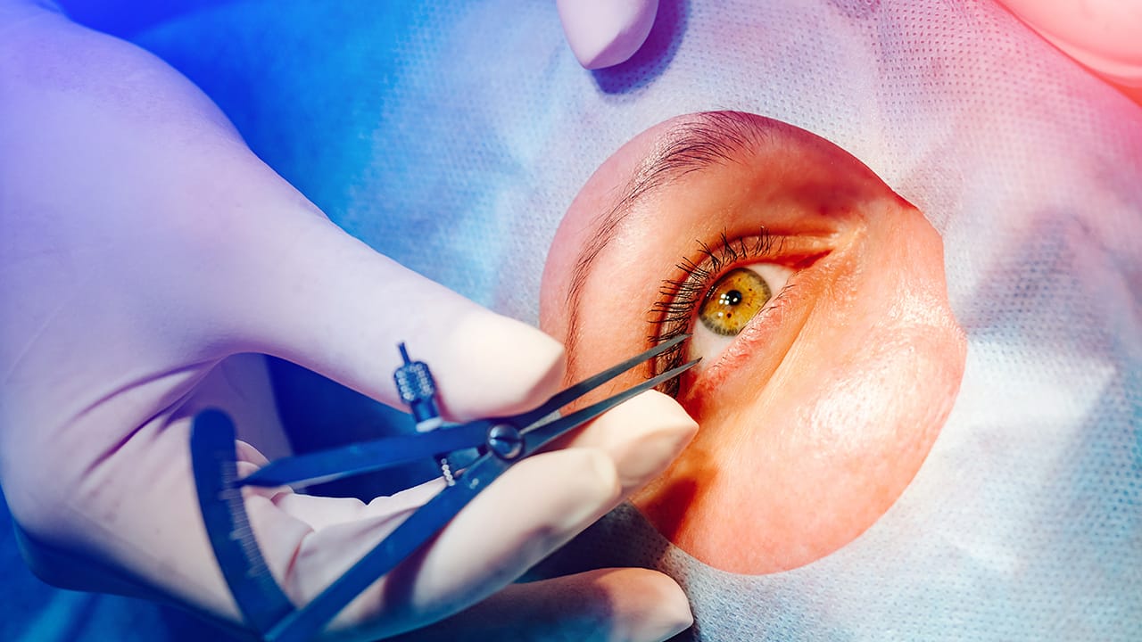 Kornea Çıkarılması: Hastanın hasarlı kornea bölgesi cerrahi aletlerle çıkarılır.